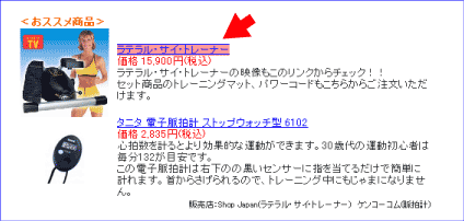 (2) 実際に商品を取り扱っている提携先(リンク先のお店)へ移動する。